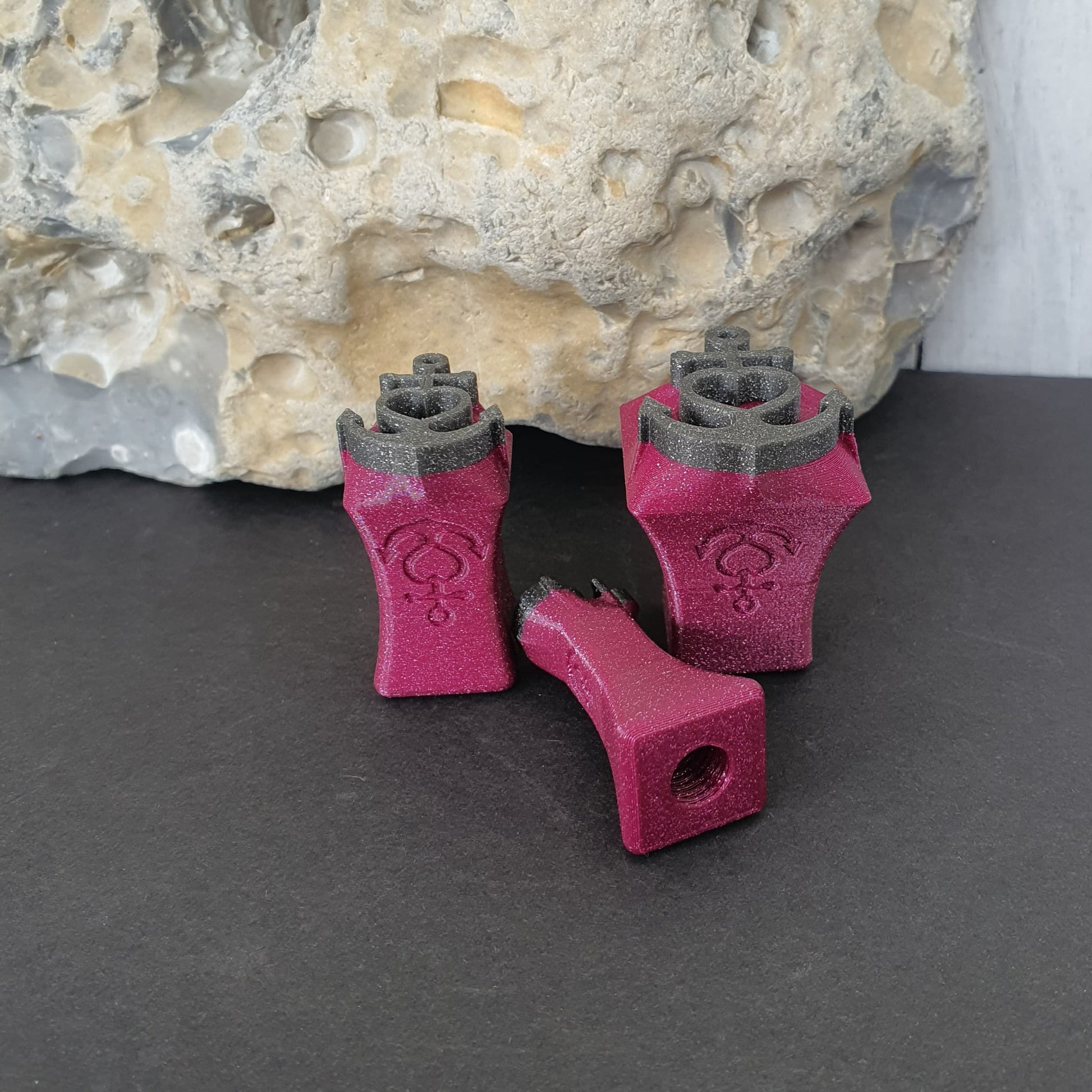 Die Stempel liegen super in der Hand und können bei Bedarf mit unserem Griff ( hier im Shop seperat erhältlich) oder alternativ mit einem Bleistifft bzw. 8mm Gewindestange verlängert werden.